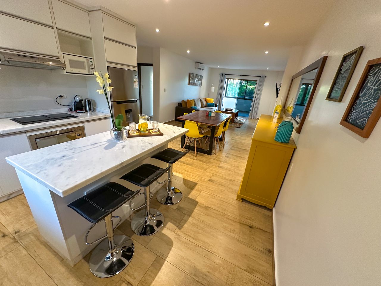El Apartamento Jazmín Amarillo es la opción ideal para grupos o familias que buscan amplitud, comodidad y una estadía sin complicaciones. Con capacidad para hasta 6 personas (dos camas matrimoniales, dos camas singles y extra dos colchones), ofrece ambientes luminosos y funcionales que invitan al descanso y la convivencia. Totalmente equipado y con desayuno incluido, combina comodidad y practicidad para que cada huésped disfrute una experiencia acogedora, relajada y llena de confort.