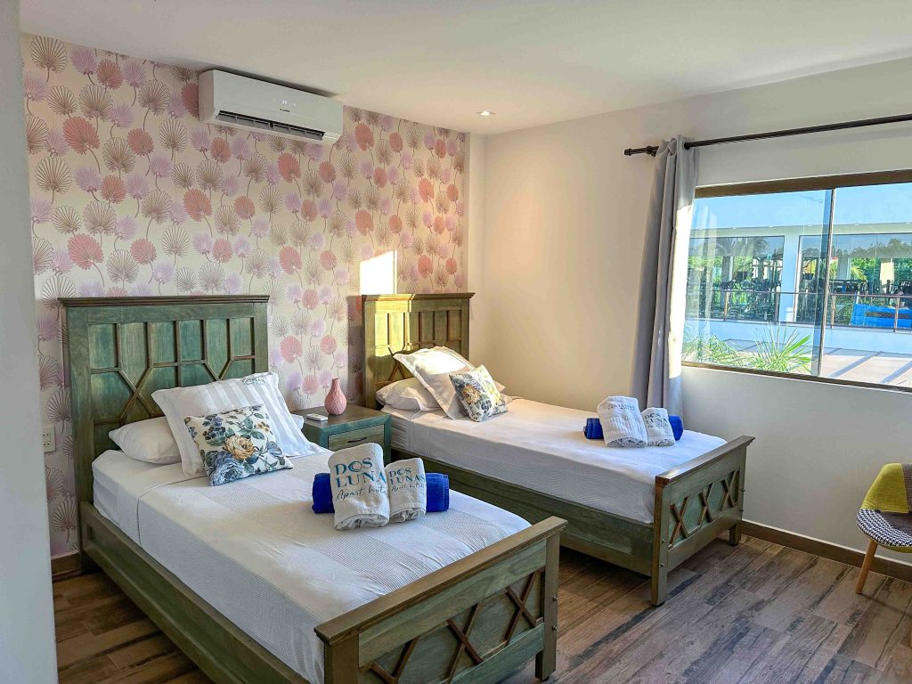 Nuestros Apartamentos, Jazmín Amarillo y Oasis Turquesa, ofrecen espacios amplios y versátiles, pensados para estadías más prolongadas o para quienes buscan mayor independencia sin renunciar al estilo y al confort que caracteriza a Dos Lunas.