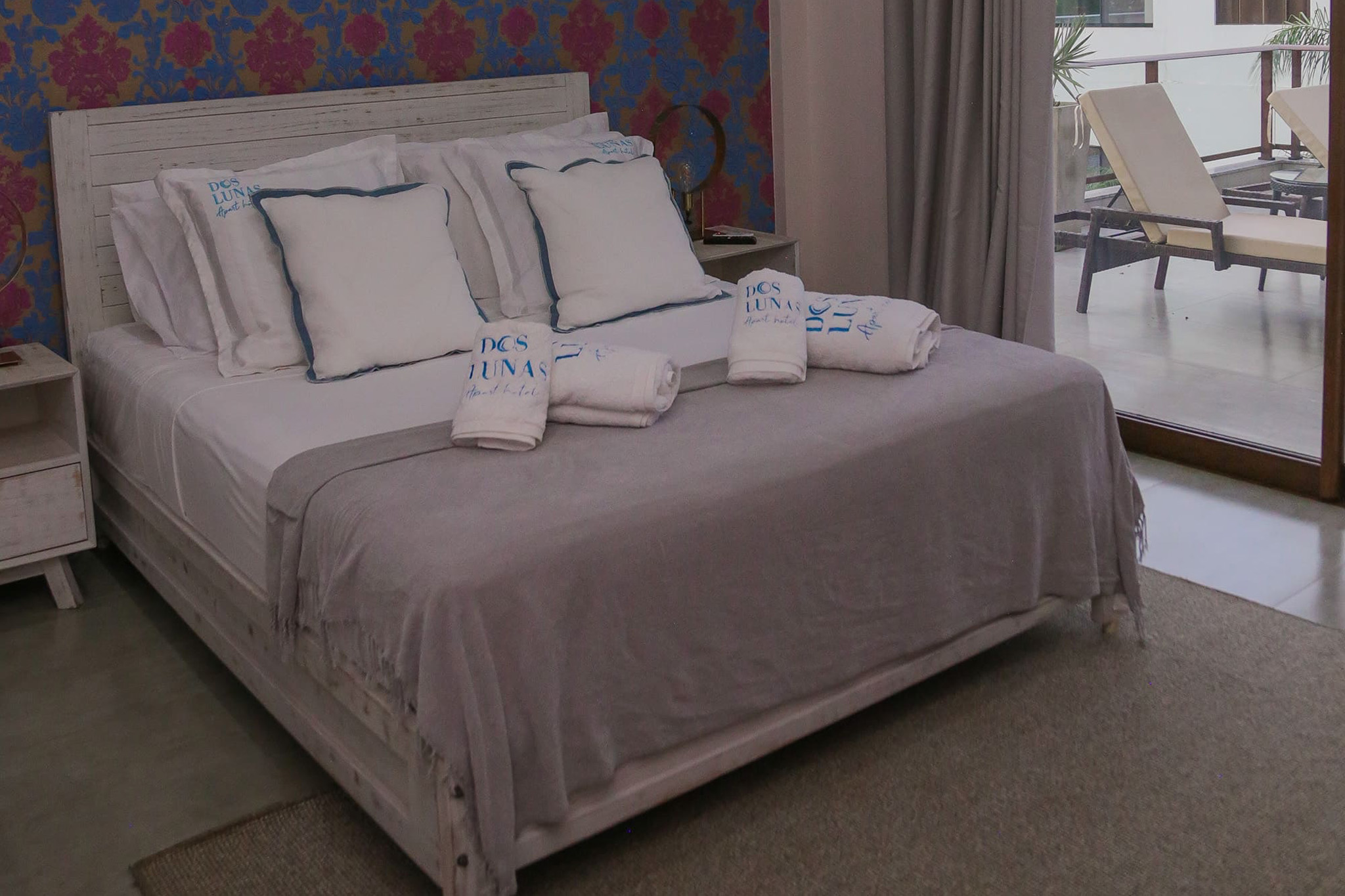 Habitaciones, Suite PremierLa Suite Premier Rubí destaca por su calidez y carácter, creando un ambiente envolvente que invita a relajarte desde el primer instante. Con detalles elegantes y amenidades pensadas para tu confort, esta suite ofrece una experiencia acogedora y distintiva, ideal para quienes buscan una estadía con estilo propio. -